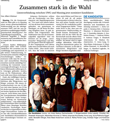Unsere Liste für Massing - Frischer Wind fürs Rathaus