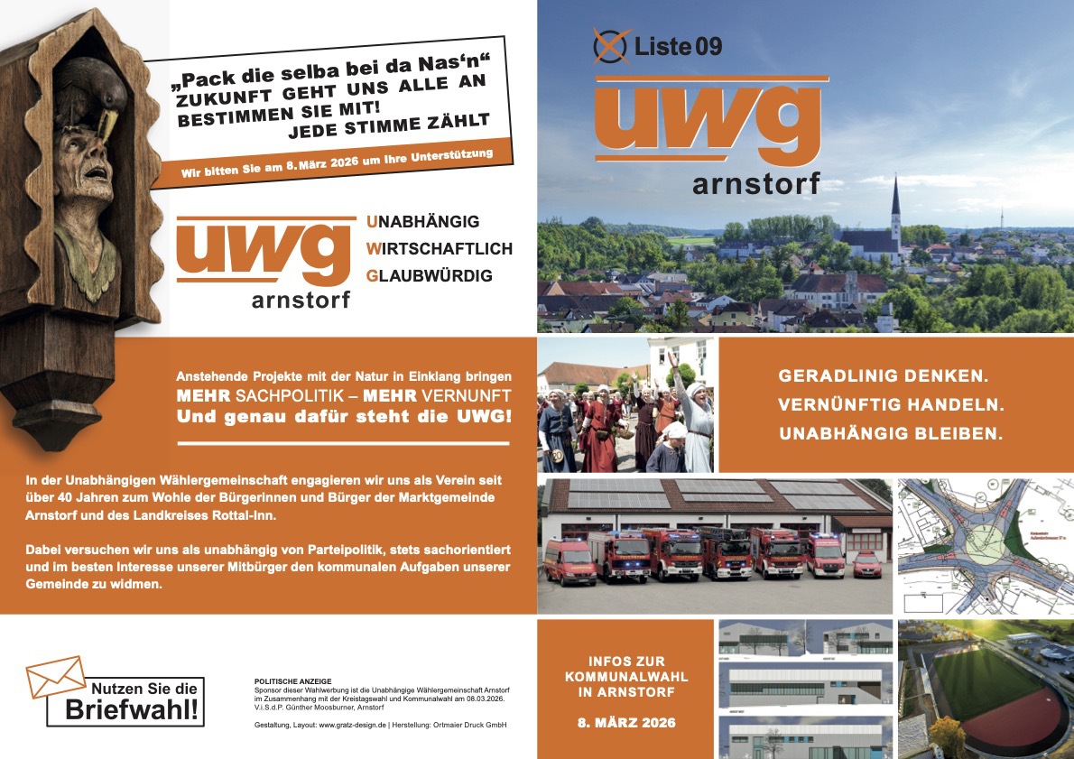 Die UWG Bayerbach lädt herzlich ein zur Wahlveranstaltung am Freitag, 06. Februar 2026, um 19:00 Uhr im Landgasthof Winbeck, Holzham 5, 94137 Bayerbach.